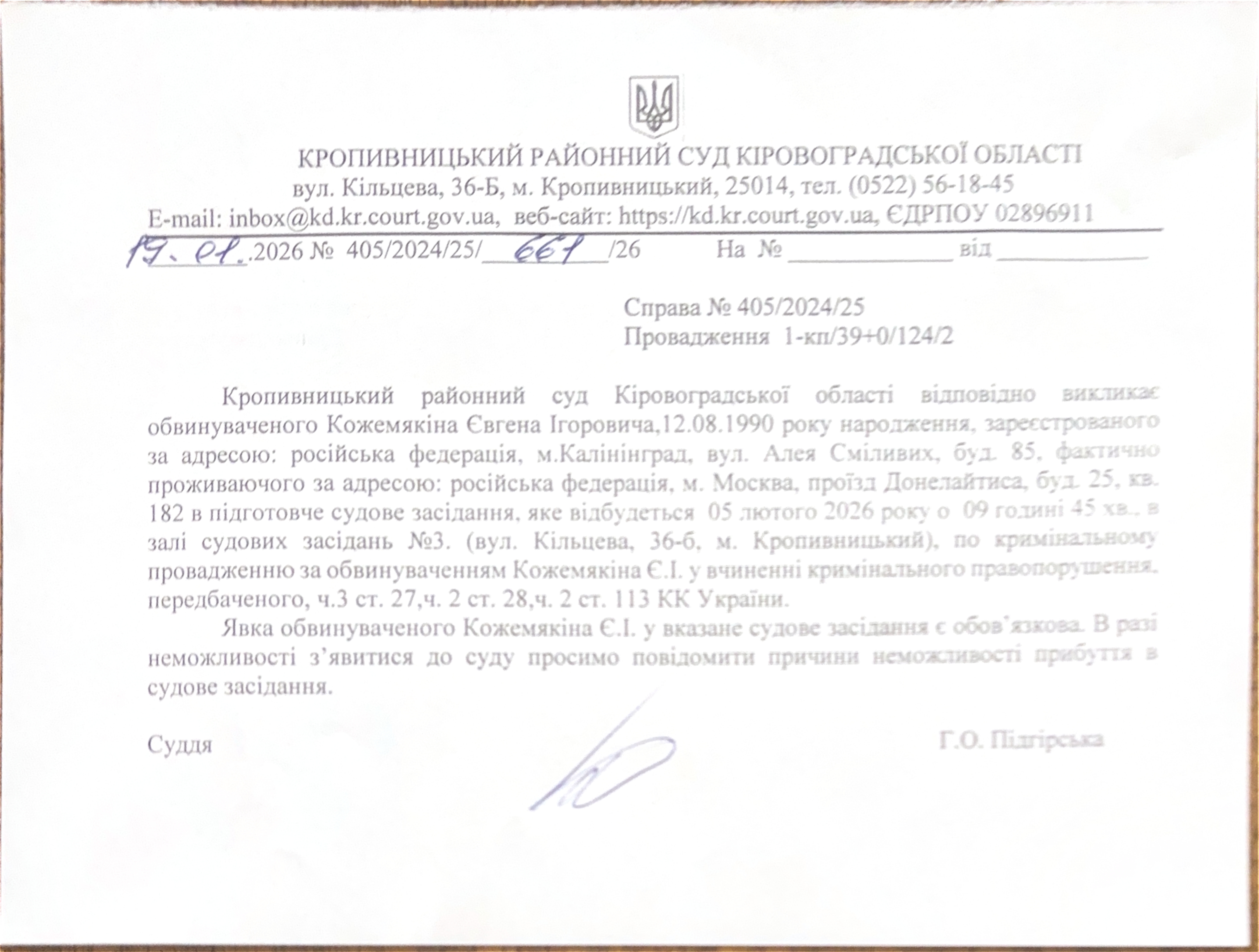 Увага! Виклик до суду Кожемякіна Євгена Ігоровича