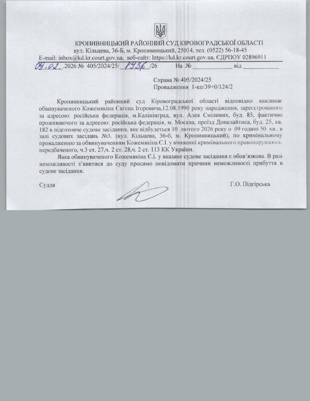 Увага, суд перейменовано з Кіровоградський районний суд Кіровоградської області