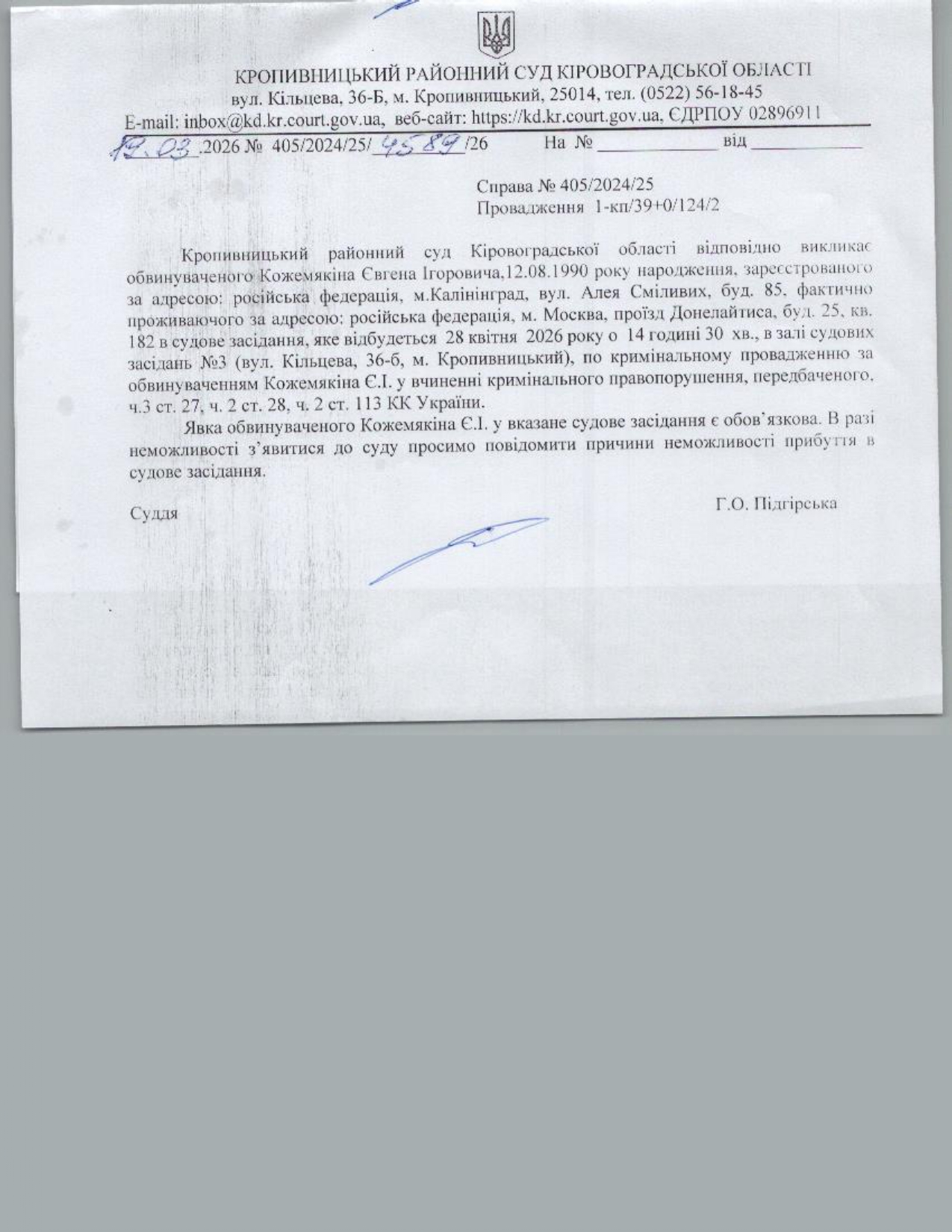 Увага, суд перейменовано з Кіровоградський районний суд Кіровоградської області