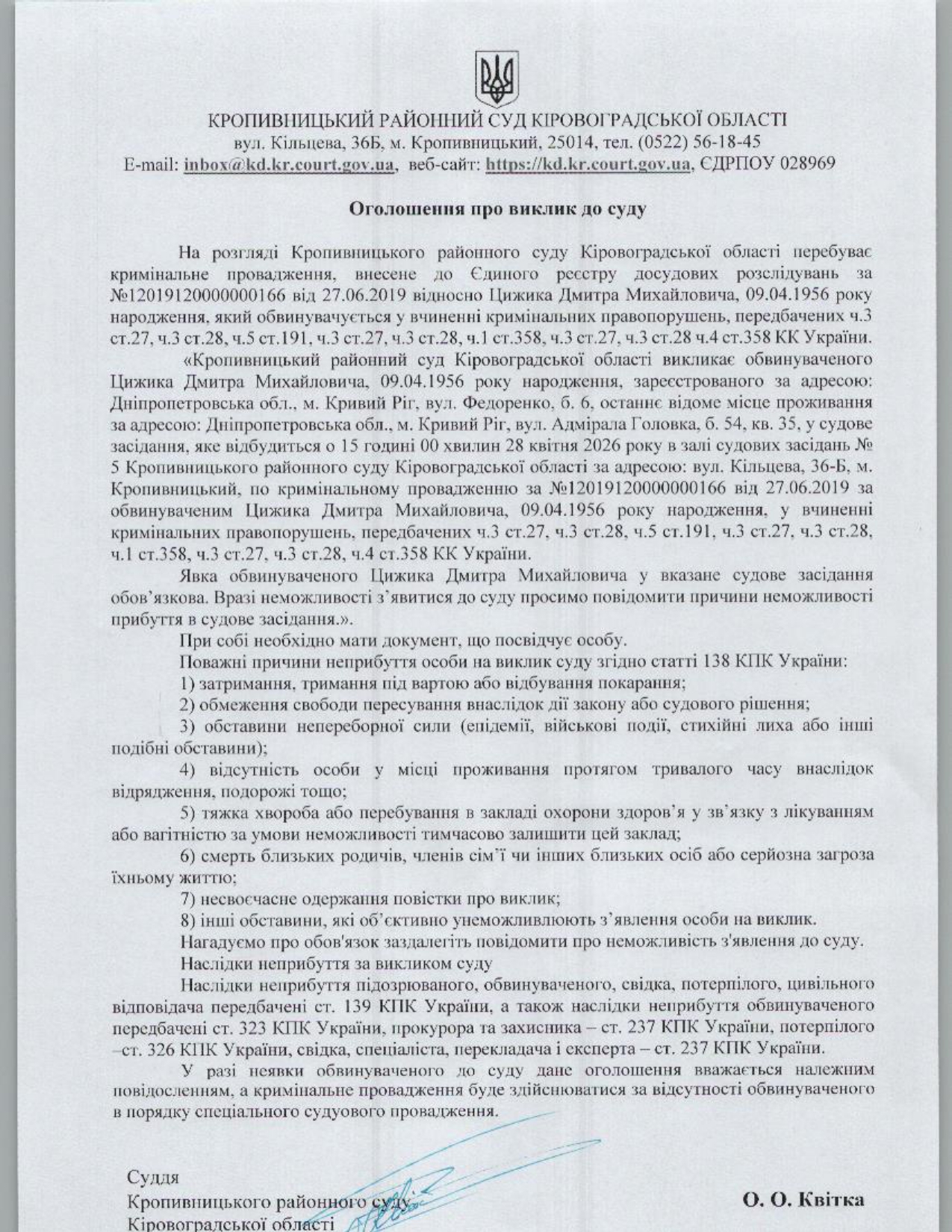Увага, суд перейменовано з Кіровоградський районний суд Кіровоградської області